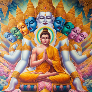 Buda seria uma das representações de Brahma, ou de Oxalá, Apolo, Thoth e tantos Deuses que representam o numero um, da unificação com o todo, que é o Nirvana.