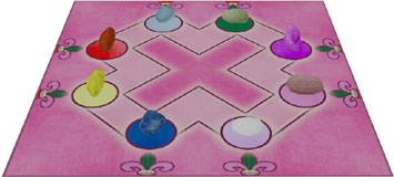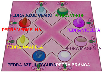 É necessário de oito pedras das seguintes cores: azul escuro, azul claro, branca, verde, magenta, vermelha, amarela e violeta.